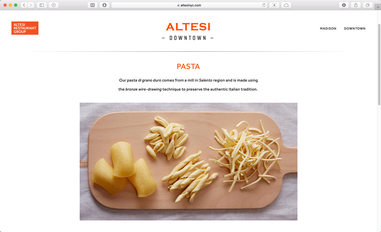 The two Altesi restaurants (one on Madison Ave and another on Spring St) are great examples of fine Italian dining and we wanted to reflect that in the design of their website.
