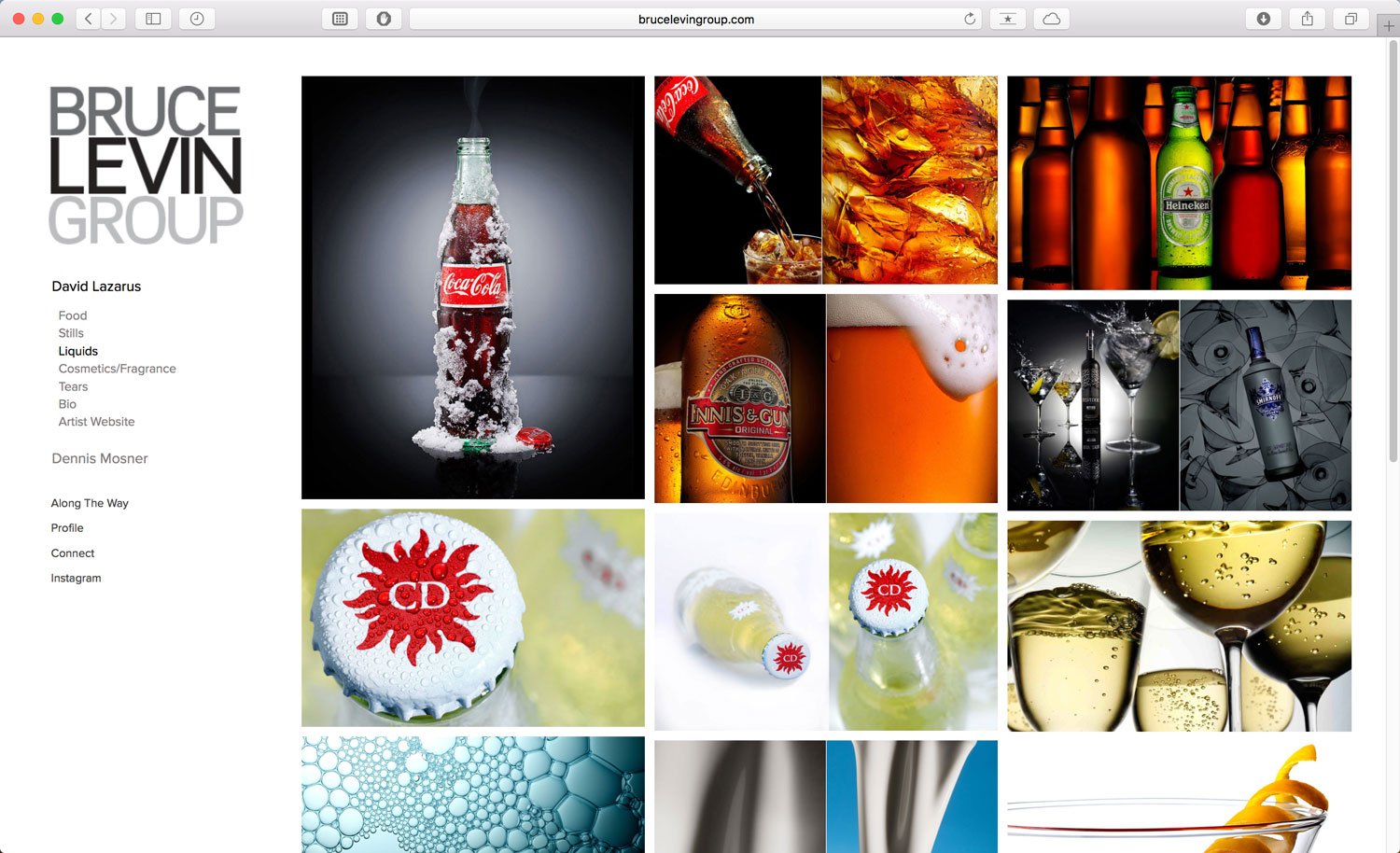 Bruce Levin represented a select roaster of commercial photographers and needed a clean, modern website to showcase the work of his artists and a way to easily update the content. We built the website on Squarespace and edited the entire archive of photographers' work.