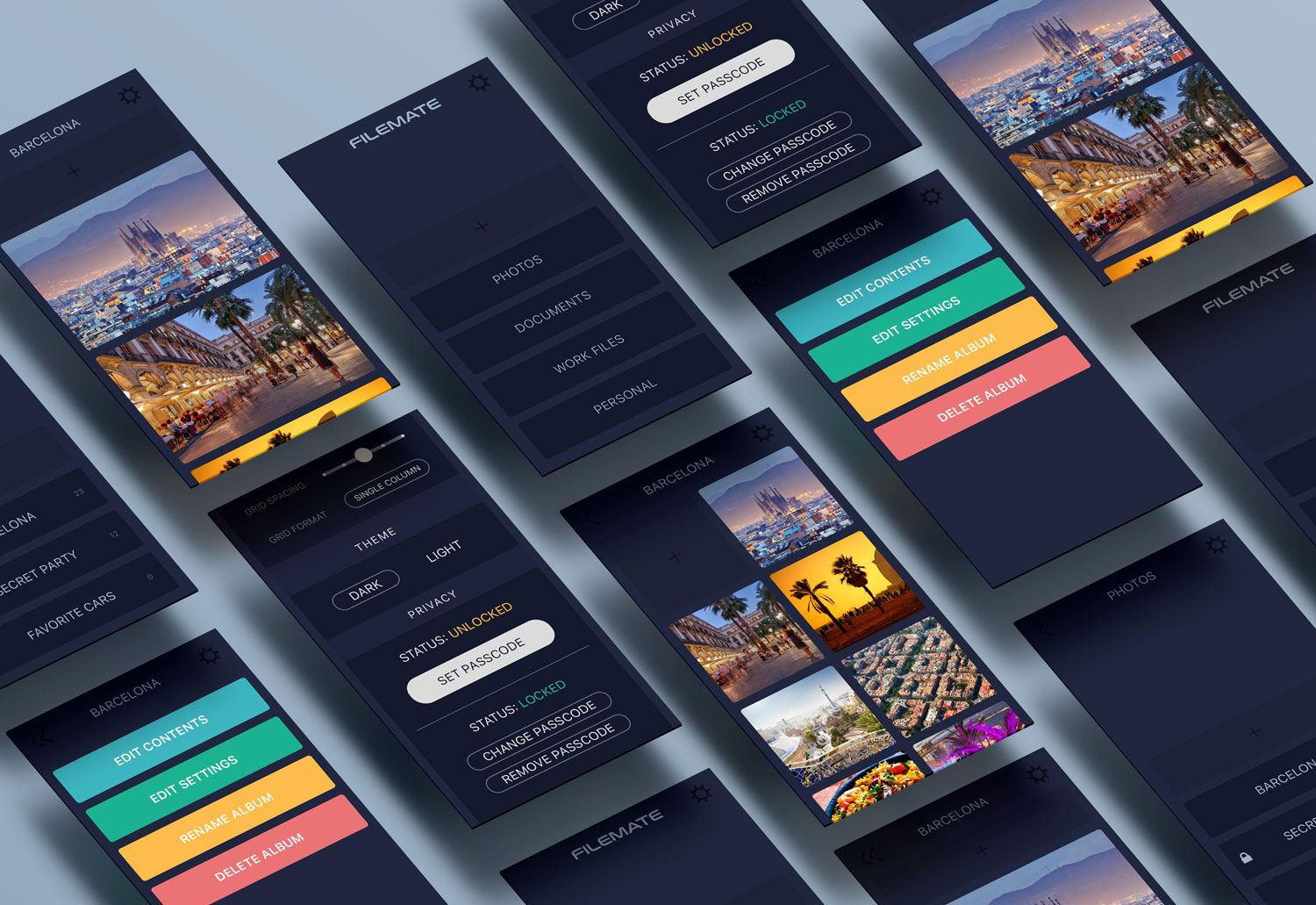 Filemate is our vision for a modern, intuitive file and photo manager app. Users will have access to advanced customization, passcode or biometrically protected folders, individual folder themes and different grid styles.